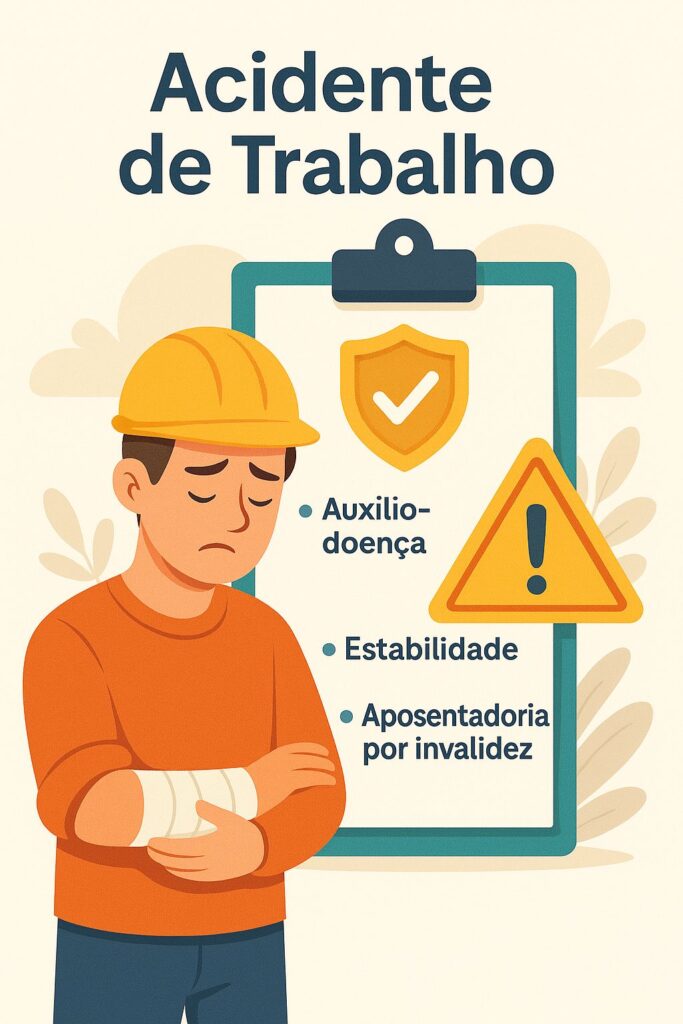 De acordo com a legislação, o acidente de trabalho é aquele que ocorre no ambiente de trabalho ou em função da atividade exercida pelo trabalhador, resultando em:✔ Lesão corporal✔ Doença ocupacional✔ Redução da capacidade laboral (temporária ou permanente) Isso inclui não apenas acidentes dentro da empresa, mas também doenças causadas por exposição a agentes nocivos e até mesmo acidentes no trajeto para o trabalho. Quando ocorre um acidente de trabalho, o trabalhador tem direito a: ✔ Auxílio-doença acidentário: Se precisar ficar afastado por mais de 15 dias, recebe benefício do INSS sem período de carência✔ Estabilidade no emprego: Direito a 12 meses de estabilidade após o retorno ao trabalho✔ Aposentadoria por invalidez: Se o acidente causar incapacidade total e permanente✔ Recolhimento do FGTS durante o afastamento✔ Indenização por danos morais ou materiais, se a empresa tiver responsabilidade pelo acidente Se você sofreu um acidente de trabalho e quer garantir seus direitos, busque orientação jurídica especializada!